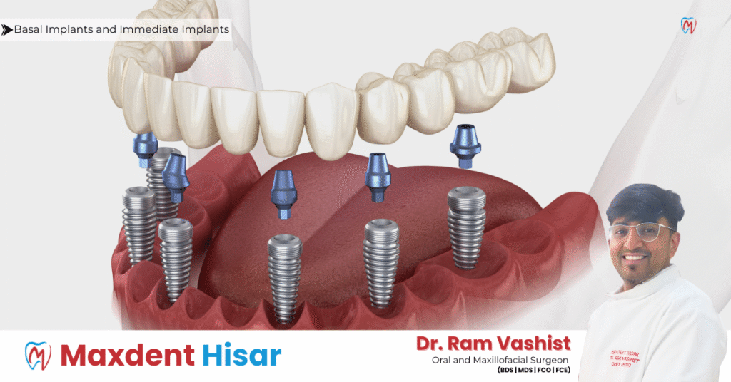 At Maxdent Dental Clinic Hisar, Dr. Ram Vashist offers Basal Implants, also known as Immediate Implants, for patients who want fast, strong, and permanent teeth replacement—without waiting for months!